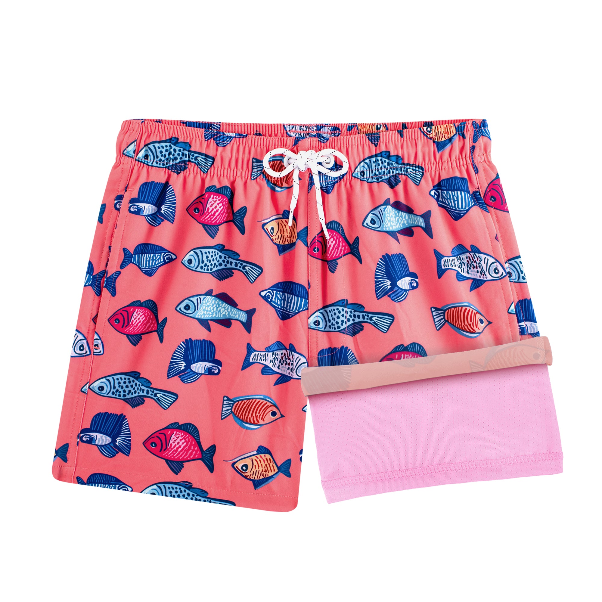 [2 in 1 Boxer Brief Liner & Adjustable Draw-Strip Waist]: Boys swim trunks with compression liner keep kids comfortable and itch-free, while the double-layer no-mesh design keeps sand out. The elastic waistband with a drawstring provides a better fit and adapts to a wider range of body shapes, making the boys' swim shorts easy to put on and take off. In addition, the two large side pockets of kids' swim trunks can conveniently store small items, combining practicality and thoughtful design.
