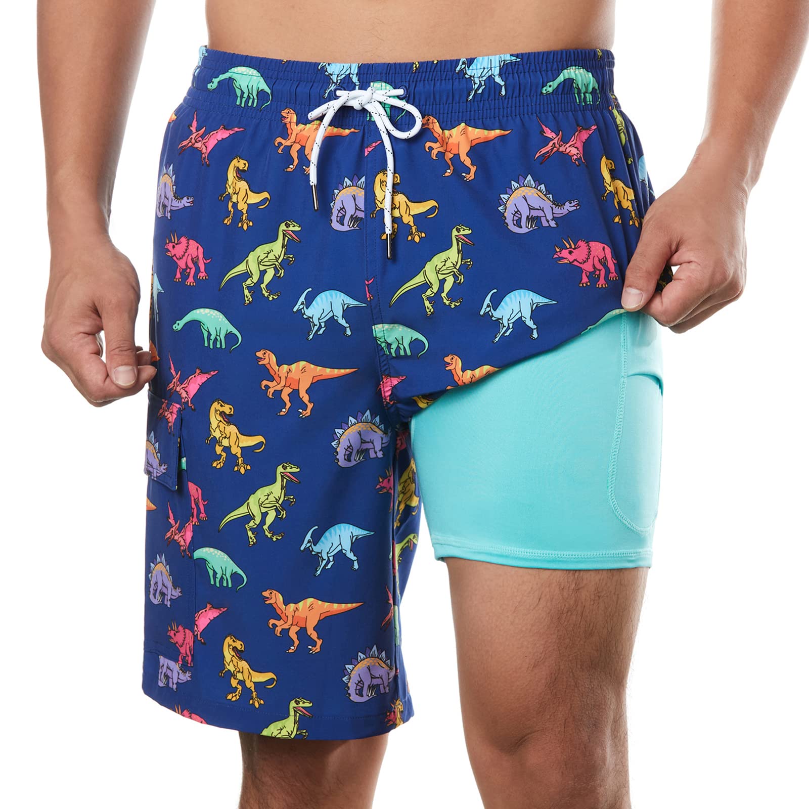 [Large Cargo Pocket shorts]: Beach shorts has phone pocket on the compression liner without mesh netting, also a large cargo pocket is designed for your convenience.It‘s the perfect gifts for your guys.
