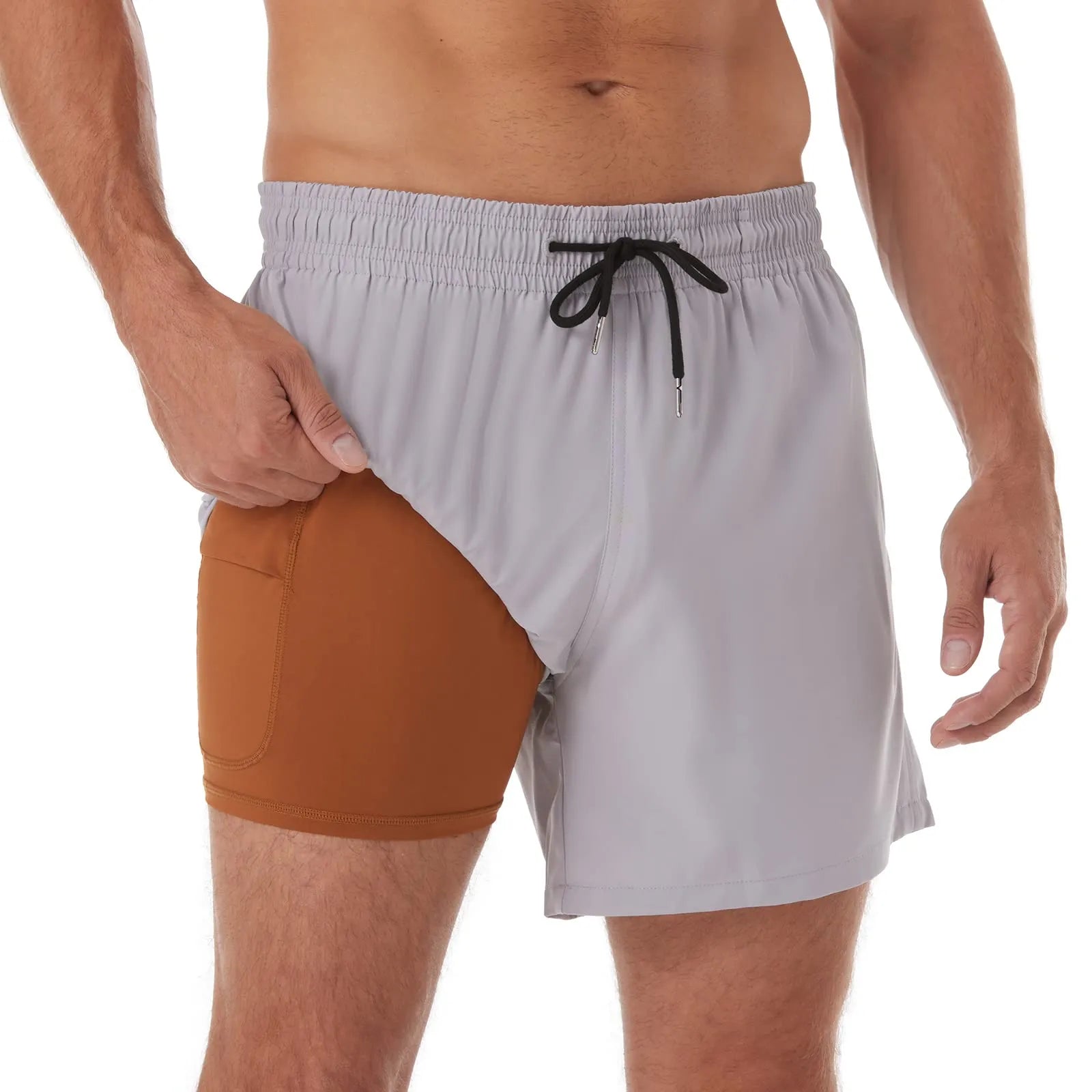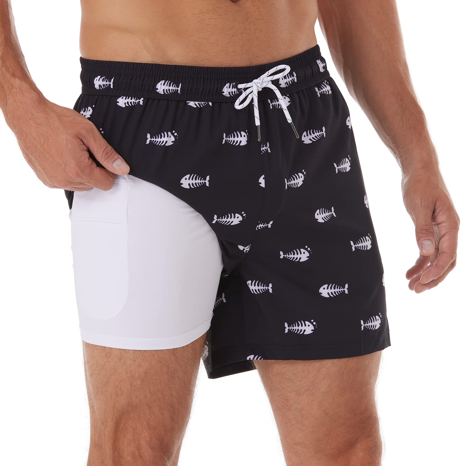 [2in1 Compression Liner]: Boxer brief liner is soft and comfortable with large phone pocket. You won't feel tight with mens swim shorts. Prevents itching caused by sand,double layer no mesh prevents the outer fabric from rubbing against the skin and it likes the comfort of your second skin.