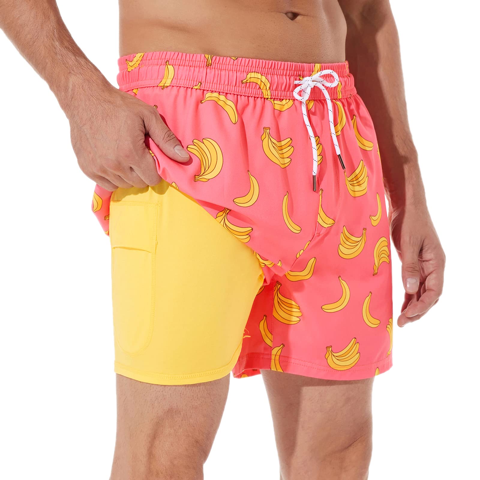 [2in1 Compression Liner]: Boxer brief liner is soft and comfortable with large phone pocket. You won't feel tight with mens swim shorts. Prevents itching caused by sand,double layer no mesh prevents the outer fabric from rubbing against the skin and it likes the comfort of your second skin.