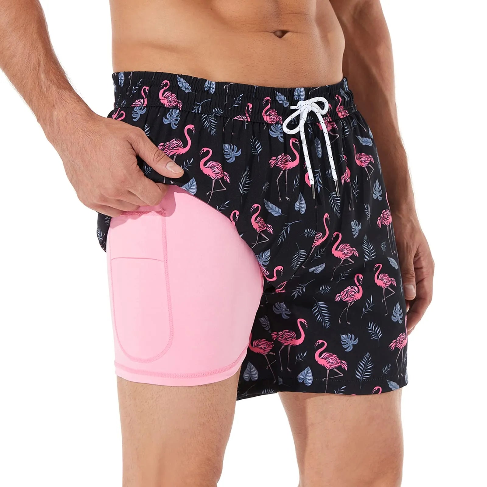 [2in1 Compression Liner]: Boxer brief liner is soft and comfortable with large phone pocket. You won't feel tight with mens swim shorts. Prevents itching caused by sand,double layer no mesh prevents the outer fabric from rubbing against the skin and it likes the comfort of your second skin.