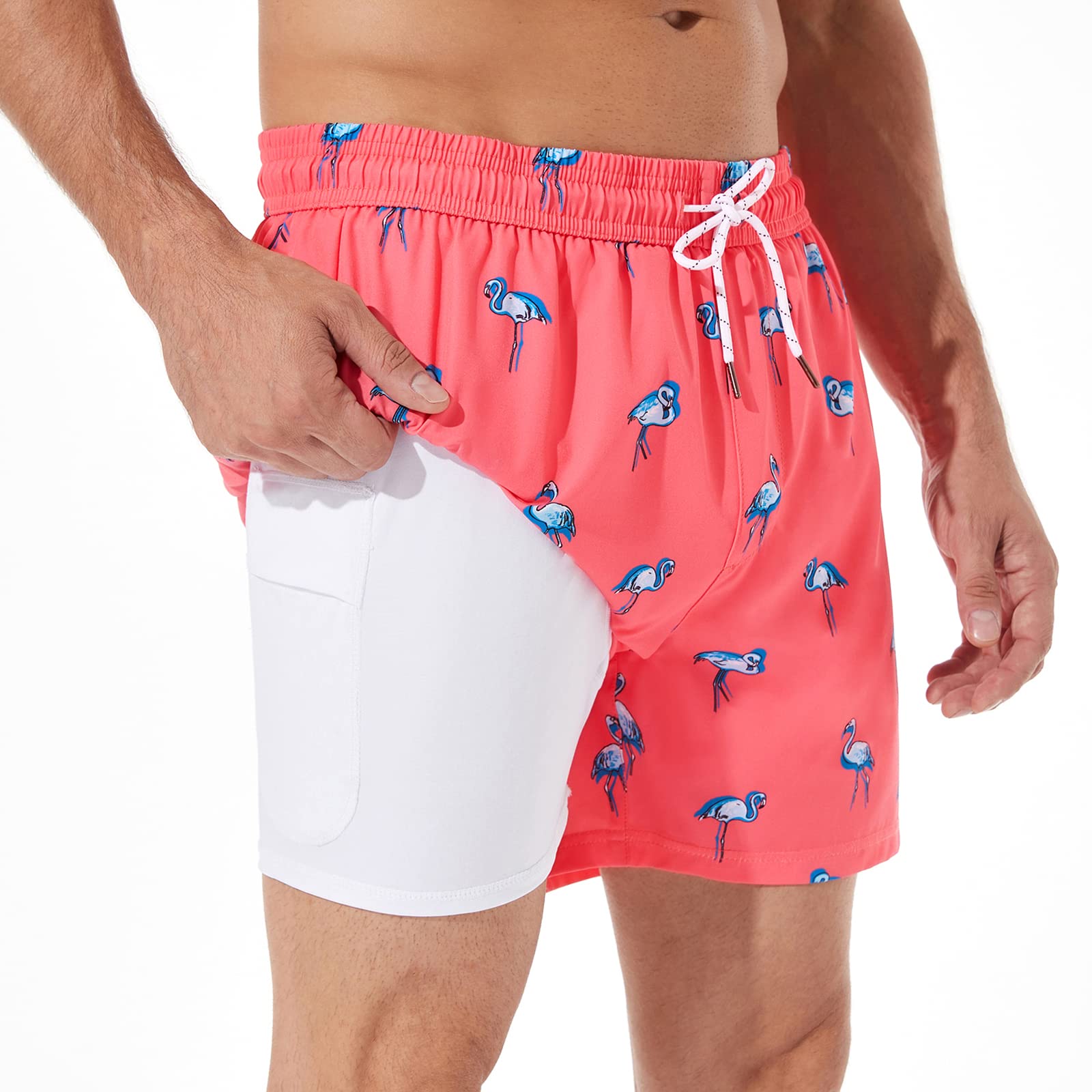 [2in1 Compression Liner]: Boxer brief liner is soft and comfortable with large phone pocket. You won't feel tight with mens swim shorts. Prevents itching caused by sand,double layer no mesh prevents the outer fabric from rubbing against the skin and it likes the comfort of your second skin.