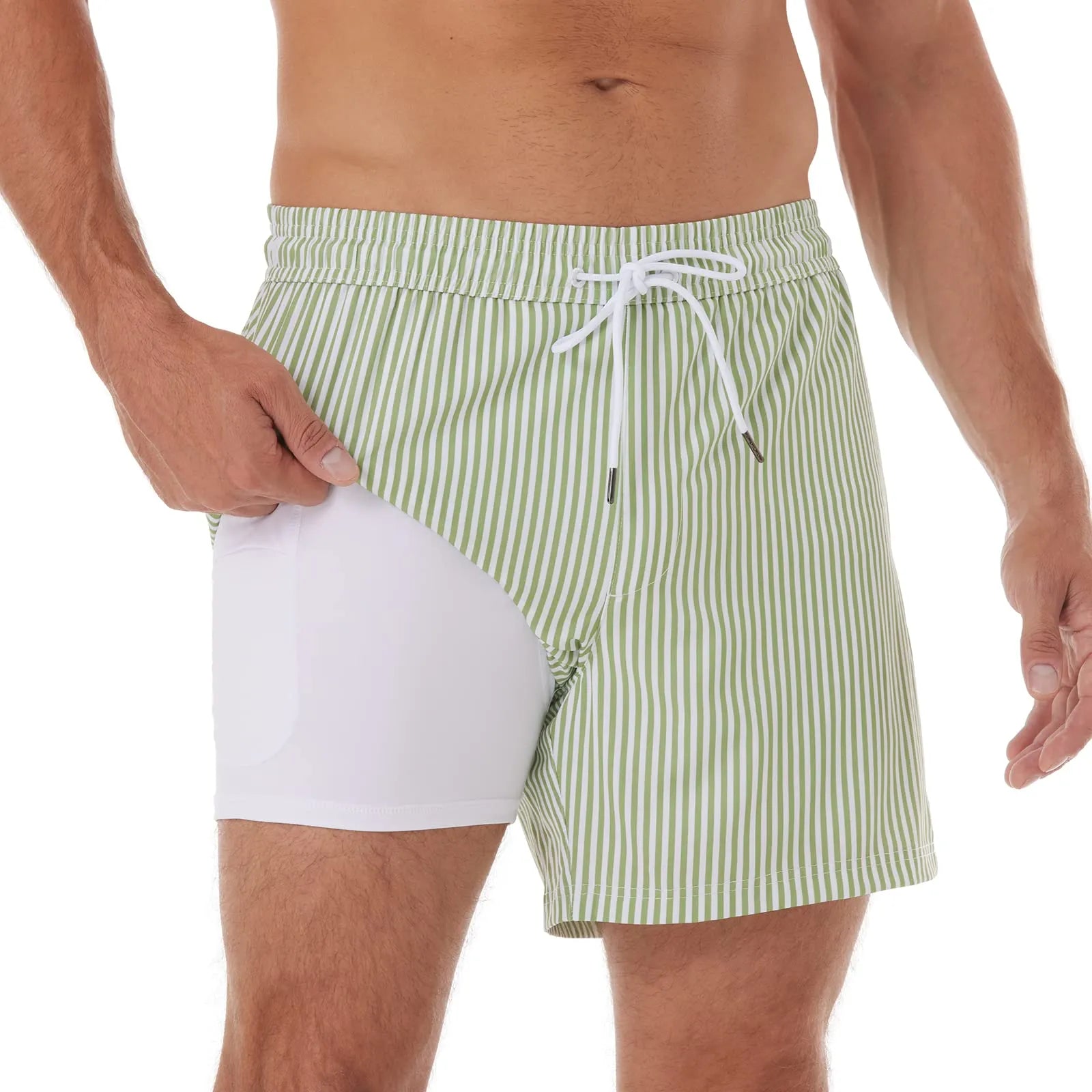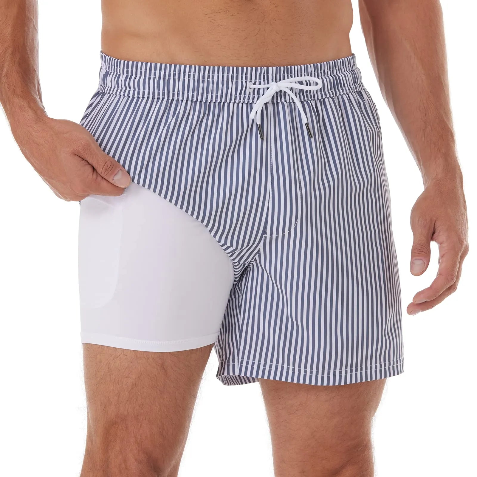 [Large Zipper and Secure Pocket]: Beach shorts have a phone pocket on the compression liner without mesh, also a large zipper side pocket is designed for your convenience.