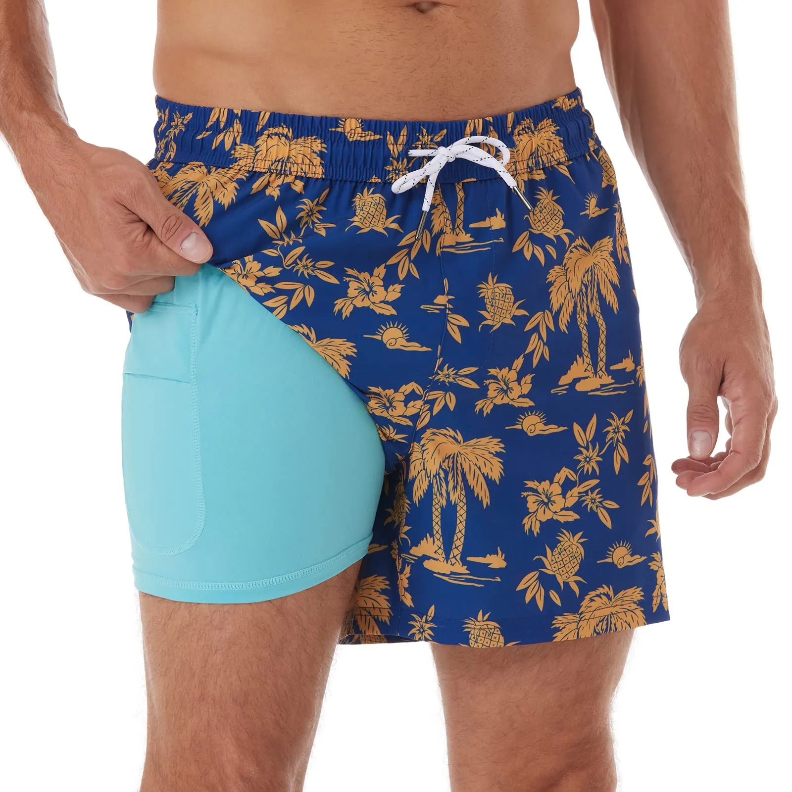 [Large Zipper and Secure Pocket]: Beach shorts have a phone pocket on the compression liner without mesh, also a large zipper side pocket is designed for your convenience.